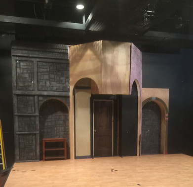 The highly popular play Doubt was an effort in the Allen Bales Theatre at The University of Alabama. The Bales is generally reserved for the MFA directing candidates to mount their productions. It features a 3/4 thrust stage and notoriously tiny budgets. I was alloted $600 dollars for this show, nearly all of that went to 3/4" EPS foam to carve the stones.